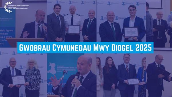 Mae Comisiynydd yr Heddlu a Throseddu (CHTh) Llywelyn a’i swyddfa’n dathlu llwyddiant sylweddol yng Ngwobrau Cymunedau Mwy Diogel 2025, gyda mentrau a ariennir gan y CHTh, sefydliadau a gefnogir gan y CHTh, a Llysgennad Ieuenctid SCHTh i gyd yn cael eu cydnabod am eu cyfraniad neilltuol i ddiogelwch cymunedol, diogelu ac ymyrraeth gynnar.